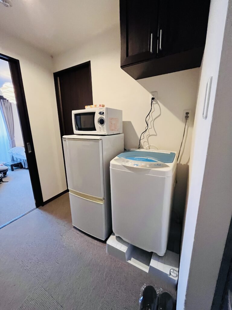 部屋には冷蔵庫・電子レンジ・洗濯機まで完備されていて、まるで自分の家のような安心感。