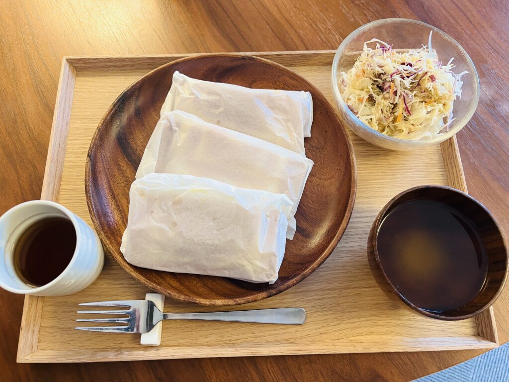 昼食には、温かいお茶と一緒にいただくホットサンドが登場✨